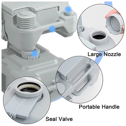 Stable: Portable travel toilet adopts very strong PP material and square design, integrated shape, non-slip durable, can bear up to 300KG. Flushing: pneumatic pump flushing, rotary flushing type flushing. Under the action of the hand pressure air pump, the water will come out from the outlet, pass through the water nozzle, and form a rotating flow of water in the toilet clear water box, cleaning more cleanly. Sitting ring: wide design of the seat ring, the elderly and pregnant women go to the toilet, sedentary not tired. Odor-proof: tight double-layer design, load-bearing link lock firmly links the cleaning tank and sewage tank together. Separate design, double anti - odor, avoid odor. Capacity: 20L large travel capacity to meet the needs of families.