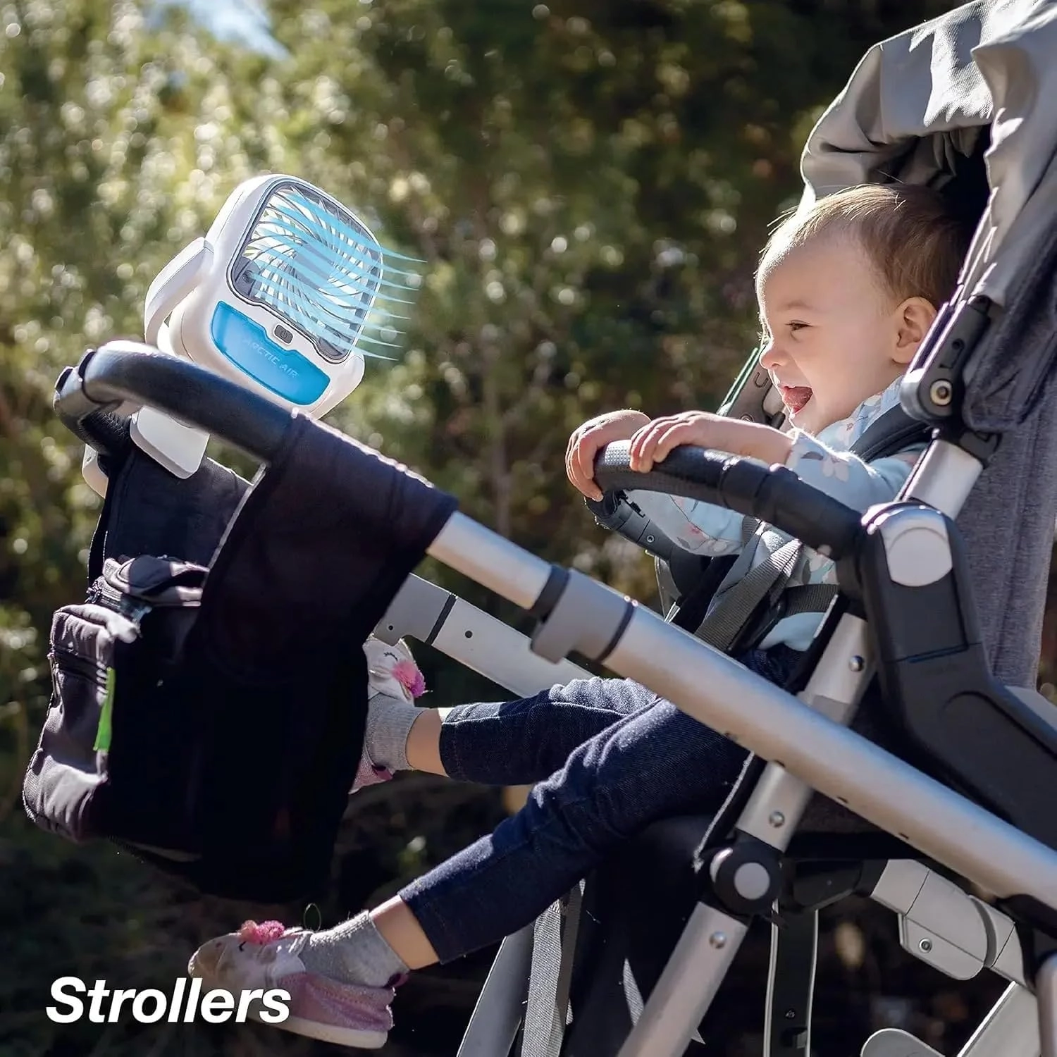 Stay cool and comfortable wherever you go with this portable fan. It features three speed settings and a 360-degree swivelling head, allowing you to direct the airflow exactly where you need it. The compact size and universal clamp make it easy to attach to strollers, desks, beds, or camping tents for convenient use indoors or outdoors. With its USB rechargeable battery and LED lights, this fan offers both function and style. Keep cool on the go with this versatile and powerful personal fan.
