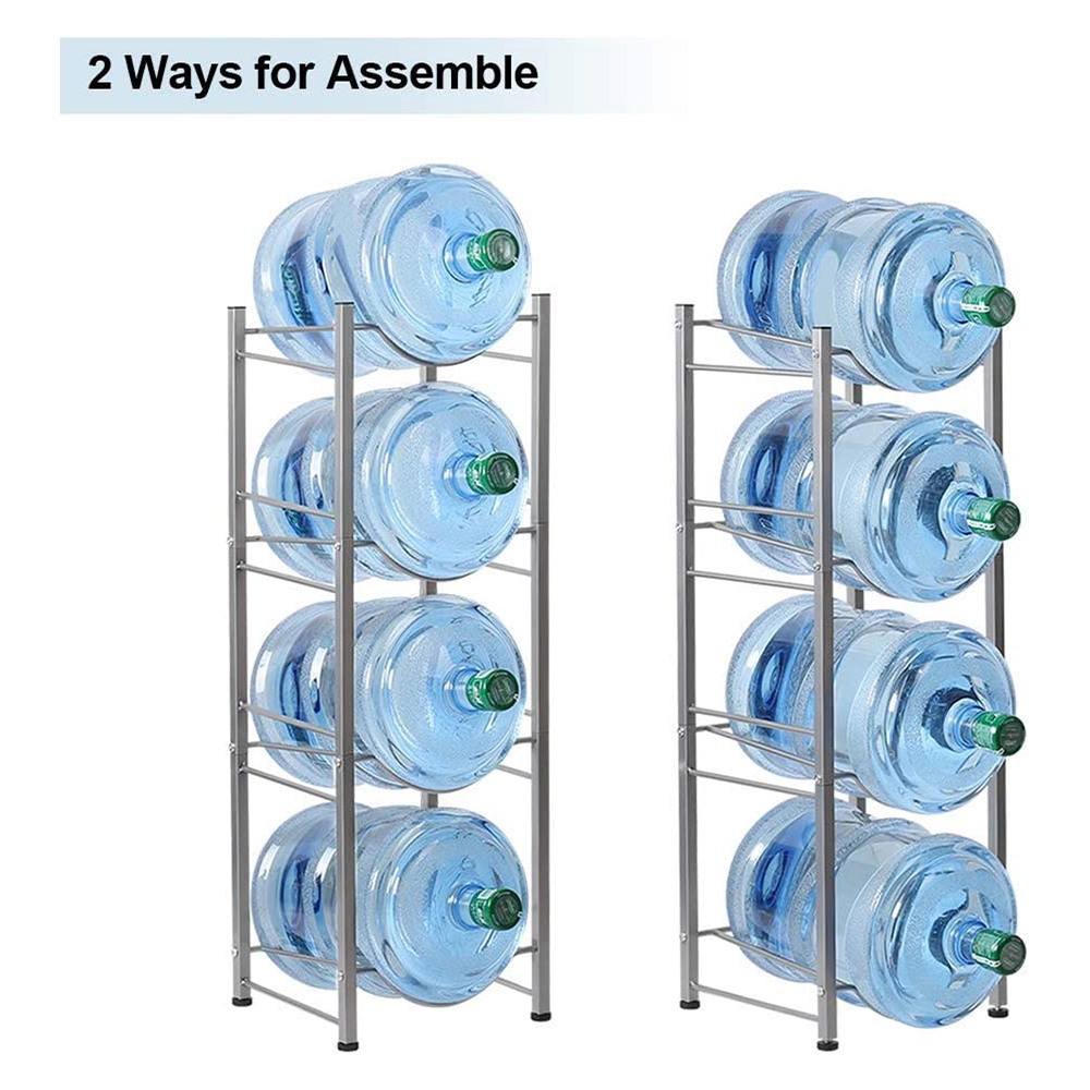This bottle holder has a compact design that takes minimal space and fits into tight space easily. The shelf is easy to clean, thereby saving time without compromising hygiene and cleanliness. You can also easily assemble this bottle holder. The detachable parts can be transported or stored when not in use in compact spaces. The 4-Tier Water Bottle Holder Shelf is specially designed to hold up to 5 gallons of water jugs. The robust steel construction ensures stability as well as longevity. It has a baking varnish finish that prevents rusting and corrosion.