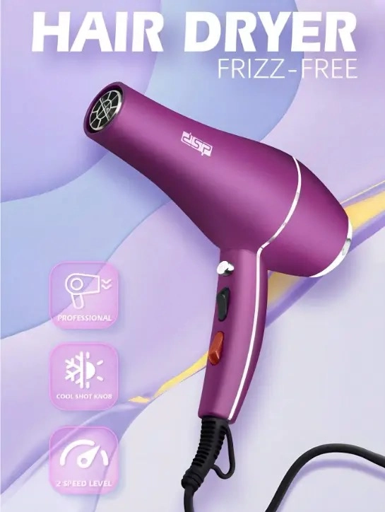 - Professional hair dryer from DSP, which has power with sufficient airflow for fast drying and styling of hair.